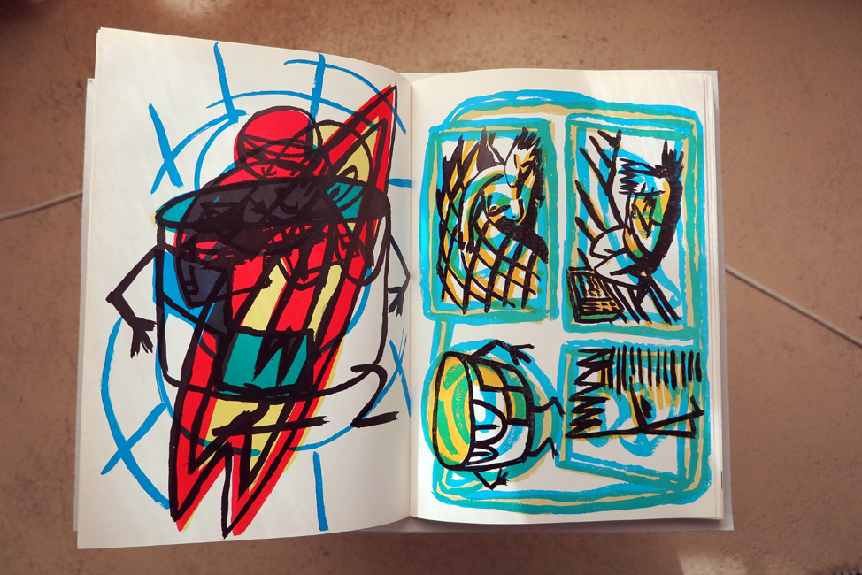 43 œuvres originales de 24 artistes sur double page imprimée en alugraphie (offset direct), reliure à la chinoise, tirage : 500 ex., 68 p., Ed. Voix Richard Meier, Montigny, 1983
